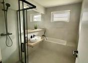 - kompletná kúpeľňa s vaňou a sprchovým kútom (batérie zn. Hansgrohe), umývadlo s doskou
