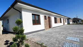 Dispozícia domu: chodba, 3 izby, kuchyňa spojená obývačkou ,kúpeľňa, toaleta, terasa 15m2.